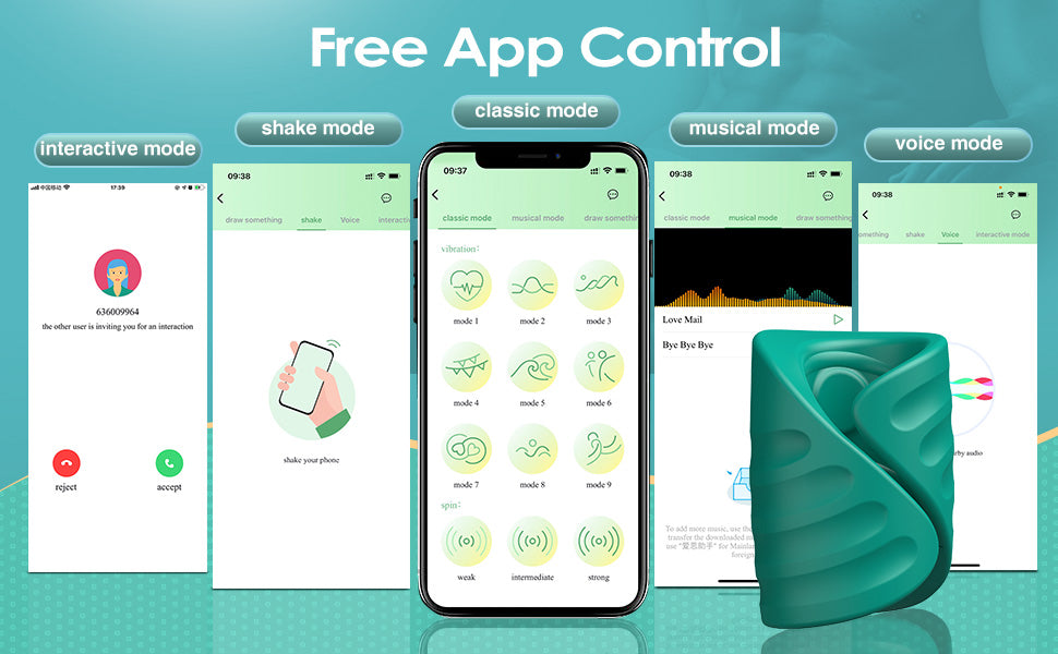 Control and adjust the vibration modes via the smartphone app for long-distance and solo play. Classic/Video /Music/ Rowing/Shaking/Interactive mode...
